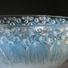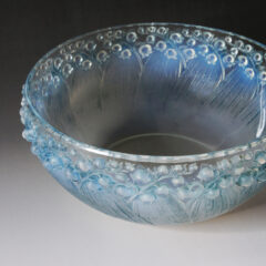 ラリックはスズランを好んで作品に描いており、香水瓶でもスズランを象った作品をデザインしています。直径約24㎝と鉢作品の中では大きな作品で、飾り映えのするサイズです。