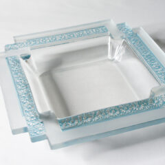 - クリアガラス、フロスト加工、ブルーパチネ彩、プレス成型
