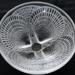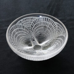 高台部分が貝殻の根本4点で支えられているからです。皿鉢作品はガラス表面に擦り傷が目立つものが多いですが、こちら使用感はほとんどなくコンディション良好です。