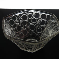 1923年にデザインされたRAISINS,SIX PANS -6面の葡萄-の小鉢。6面体からなる形状でそれぞれの面にアール・デコスタイルのデフォルメされた葡萄がデザインされています。カタログレゾネ上ではフィンガーボールの扱いになっていますが、小鉢として使い勝手の良いサイズかと思います。