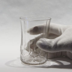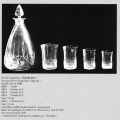 ラリックが1924年にデザインを手がけた''HAARLEM'' -ハーレム- と呼ばれるユニークなグラスが入荷しました。HAARLEMとはオランダの都市名のようです。さてはて一体何のデザインなのか。ラリックはフランスの地名をグラスデザインに取り入れることが多いですが、当作品はオランダときました。グラスの下部には球根の様な玉ねぎのような不思議なモチーフが。一体何のデザインでしょうか。ヒントはレゾネにありました。注釈で''Oignons'' -オニョン-! 玉ねぎのデザインでした。型吹き成型の薄手の仕上がりで非常に使い勝手の良いゴブレット型。パリの百貨店である「PRINTEMPS」(プランタン)のためにデザインしたモデルです。