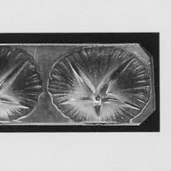 パチネ彩色とは、顔料を塗布した後にあえて拭き取ることでレリーフを際立たせて古ぼけた風合いを出す、ルネ・ラリック独特の古色技法です。サインは手彫りで「R. Lalique France」と表面左下に入っています。