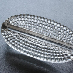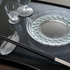 こちらは日本が作品名になっており、グラスセットなどと共に制作されたシリーズのうちの一つ。裏側にデザインされた小さなガラスの粒は、美しい真珠をイメージさせます。