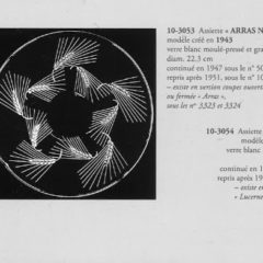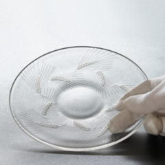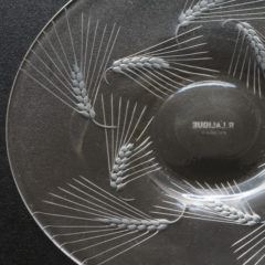 1943年にラリックがデザインを手がけた「アラス」というデザインのプレートが入荷しました。麦の穂がモチーフとなっており、中央から外に向かって放射状に広がったようなデザインです。直径は16.8cmとデザートプレートなどに使い勝手の良いサイズです。麦の穂のデザインはラリックの晩年でもある1940年に入ってから4種デザインされています。そのうちの一種。''ARRAS''とはフランス北部、ベルギー国境付近に位置する街の名前で2000年の歴史を持つ古い都市です。