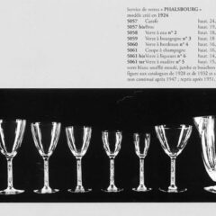 パチネ彩色とは、顔料を塗布した後にあえて拭き取ることでレリーフを際立たせて古ぼけた風合いを出す、ルネ・ラリック独特の古色技法です。カタログレゾネによると、ウォーター/ブルゴーニュ/ボルドー/マデラ/リキュール/シャンパンクープの全6種類が制作されています。