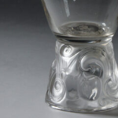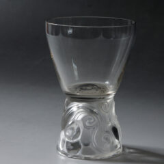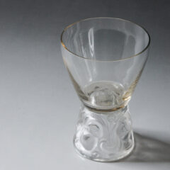 葡萄の実と蔓がモチーフになっており、全体をフロスト加工して実の部分のみ磨きを入れることで、美しい光沢を生んでいます。容量:約 90 ㎖程度で、白ワインなどに最適な小ぶりなグラスです。