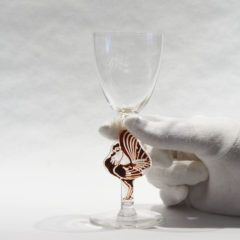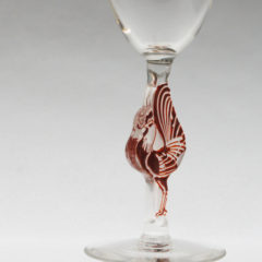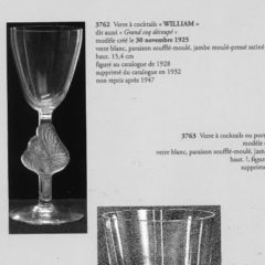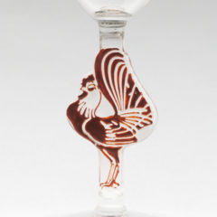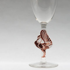ラリックが1925年にデザインを手がけたウィリアム ''WILLIAM'' のグラスが入荷しました。メダルのような形状の大ぶりな雄鶏がプレス成型でデザインされたお品。エナメル彩色のパターンは複数あるのですが、赤色系のエナメル彩。このグラスは1種のみのサイズ展開です。この系統のデザインはエドワード、ウィリアム、クリスティーナと3種展開されています。いずれもカクテルグラスの形状。アンティーク市場ではあまり流通しているグラスではなく、珍しいお品です。