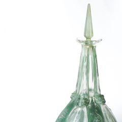 - クリアガラス、フロスト仕上げ、グリーンパチネ、型吹き(胴部)プレス(栓部)