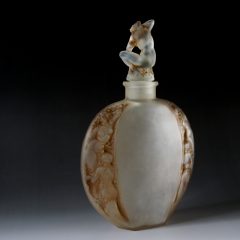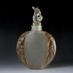 胴体部分にギリシャ神話に登場する水の精霊「シレーヌ」がラリック特有の解釈で描かれ、栓部はギリシャ神話に登場する海神ポセイドンの「アンフィトリテ」が片膝をついて波の音を聞いている姿が象られています。