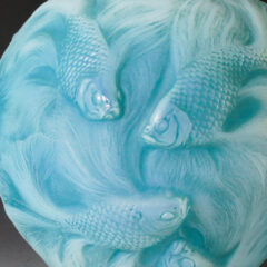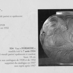 本作品は、ラリックの異国趣味が表現された作品として非常に有名です。金魚というオリエンタルなモチーフを台湾の提灯のような花瓶の形で描いています。